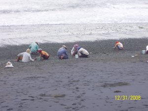 Saat itu saya belum memahami, apakah yang mereka perbincangkan, hingga hari di mana saya mengantarkan ibu ke acara perpisahan akhir tahun Dinkes Kab. Gianyar di Pantai Masceti, bersebelahan dengan lokasi desa yang saya sampaikan sebelumnya. Pagi itu antara pukul 8 dan 9, saya bersiap dengan Kodak EasyShare di tangan, sesuai dengan instruksi untuk mengambil setiap momen yang unik dan menarik. Langkah kaki saya tak sengaja membawa menuju pinggiran pantai yang lebih rendah dari batasan yang telah ditinggikan dengan bentangan tembok beton (abrasi di daerah ini juga cukup terkenal ganas). Aku cukup terkejut melihat jejeran manusia usia setengah baya ke atas saling tumpang tindih bayangannya di hantam mentari pagi, sepanjang pantai yang tak cukup panjang itu, puluhan dari mereka berjongkok seakan seperti anak-anak yang sedang asyik bermain-main dengan pasir.