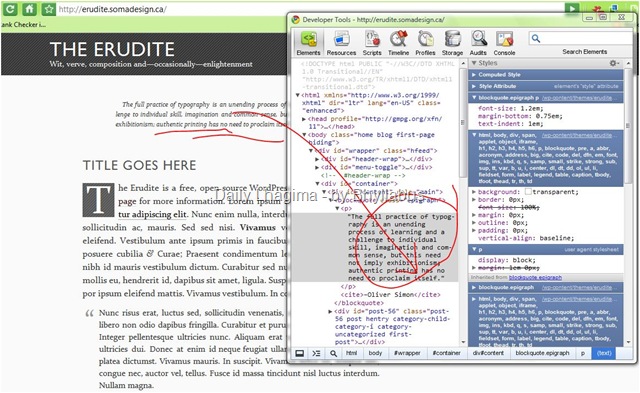 Ternyata Chrome sudah memiliki fasilitas mesin pengembang (developer tools) yang pas sesuai keperluan saya, walau masih kurang lengkap dibandingkan plugin web developer tools yang saya pasang di Firefox. Bagaimana fungsinya, silakan Anda tengok sendiri, berikut cuplikan gambarnya.