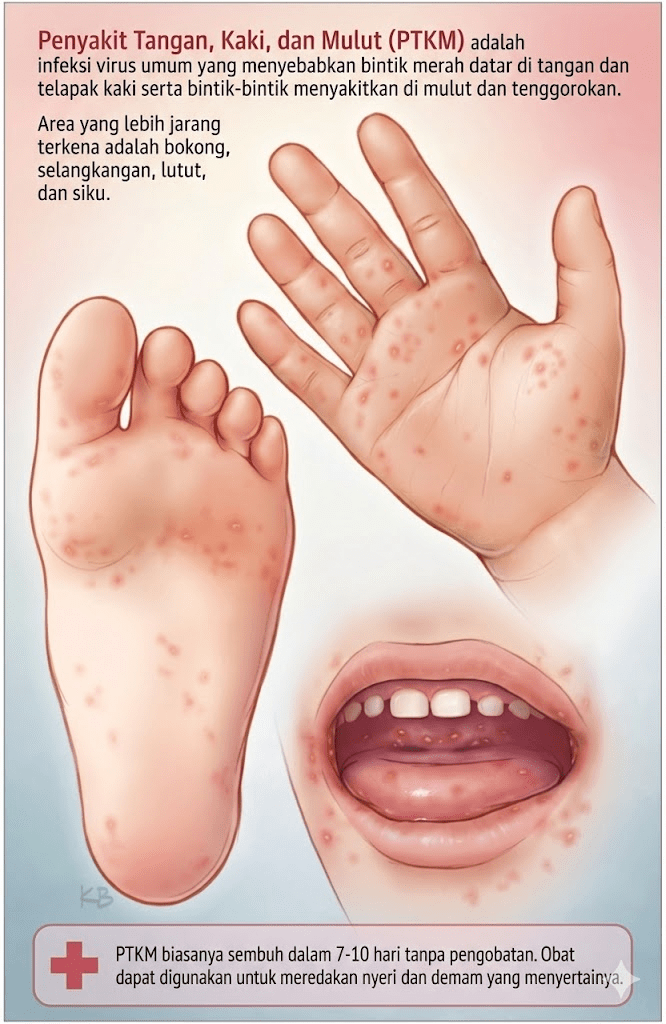 Satu hal yang perlu diluruskan: HFMD pada manusia tidak sama dengan foot-and-mouth disease (PMK) pada hewan ternak seperti sapi dan kambing. Keduanya disebabkan oleh virus yang sama sekali berbeda dan tidak saling menularkan antar spesies.