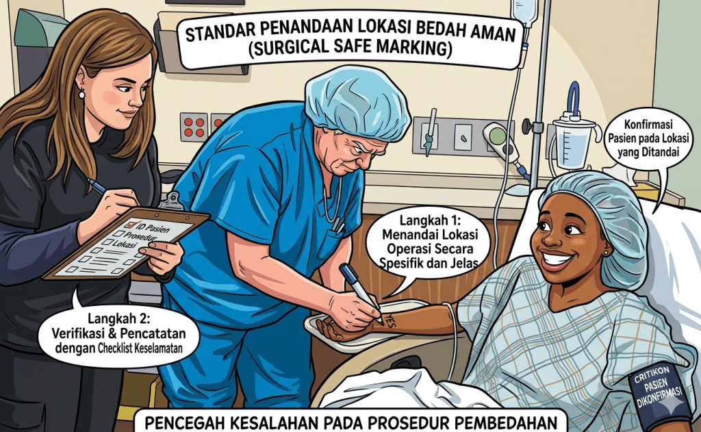 Penandaan area operasi (surgical site marking) adalah salah satu lapisan perlindungan paling fundamental untuk mencegah insiden semacam ini. Artikel ini membahas prinsip, standar internasional, regulasi Indonesia yang berlaku, serta tantangan praktis di lapangan — dengan dukungan bukti ilmiah terkini.