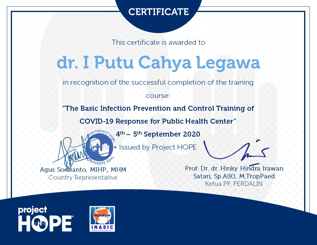 Pelatihan yang saya terutama terkait dengan pencegahan dan pengendalian infeksi. Ini adalah salah satu ujung keilmuwan manajemen kesehatan yang paling bermanfaat di era pandemi. Bagaimana mengelola orang dan tempat yang di mana berpotensi menjadi area penularan COVID-19 tetap aman bagi banyak orang yang memanfaatkannya.