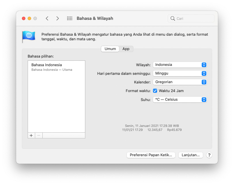 Mac Mini M1 dengan Big Sur mengenali ejaan Indonesia dengan baik, namun tidak mau menggunakannya secara asali (default). Walau pun setelan sistem menggunakan bahasa Indonesia, dan Microsoft Word sudah menggunakan setelan bahasa Indonesia, namun saat mengetik, sistem akan mengembalikan pemeriksaan ejaan ke English (Amerika Serikat).