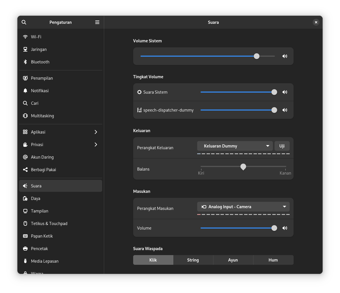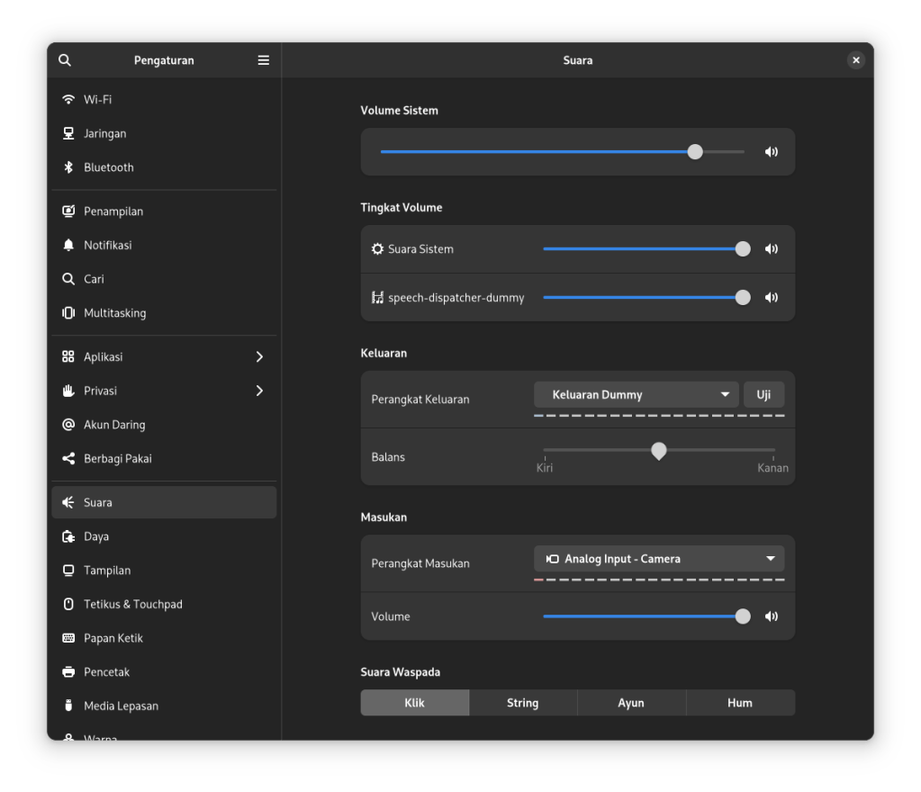 Tentu saja ada cara mengatasi masalah ini melalui beberapa trik di baris perintah, tapi saya sering kali terlalu malas untuk memperbaikinya, terutama jika masalah tidak terlalu kritikal bagi saya. Hal ini tidak hanya terjadi pada disribusi openSUSE saja, tapi distribusi yang lain juga. Paling nanti saya tambahkan converter dari USB ke AUX untuk mencoba melihat apakah hal ini bisa diakali atau tidak.
