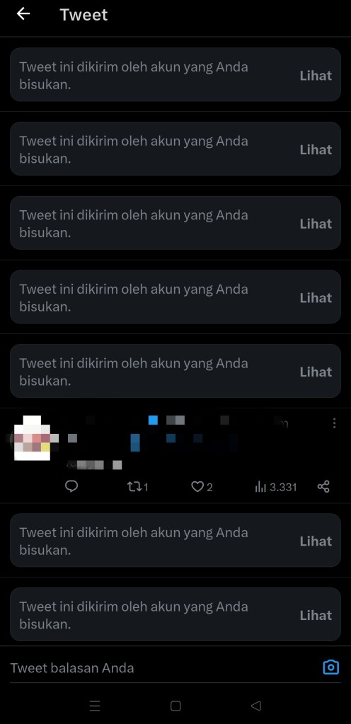 Memang manual, tapi bekerja dengan baik. Kadang saya bisa menemukan hampir satu layar thread balasan isinya spam semua yang sudah tidak ditampilkan lagi karena dibisukan.