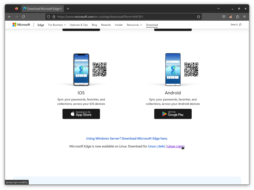 Anda cukup mengetik di mesin pencari Firefox, Edge, lalu pilih masuk ke halaman resmi Microsoft. Tujuannya adalah bagian agak ke bawah di halaman tersebut. Pilihan untuk Linux memang hanya dalam sebaris kalimat. Jangan lupa pilih yang Linux (RPM).