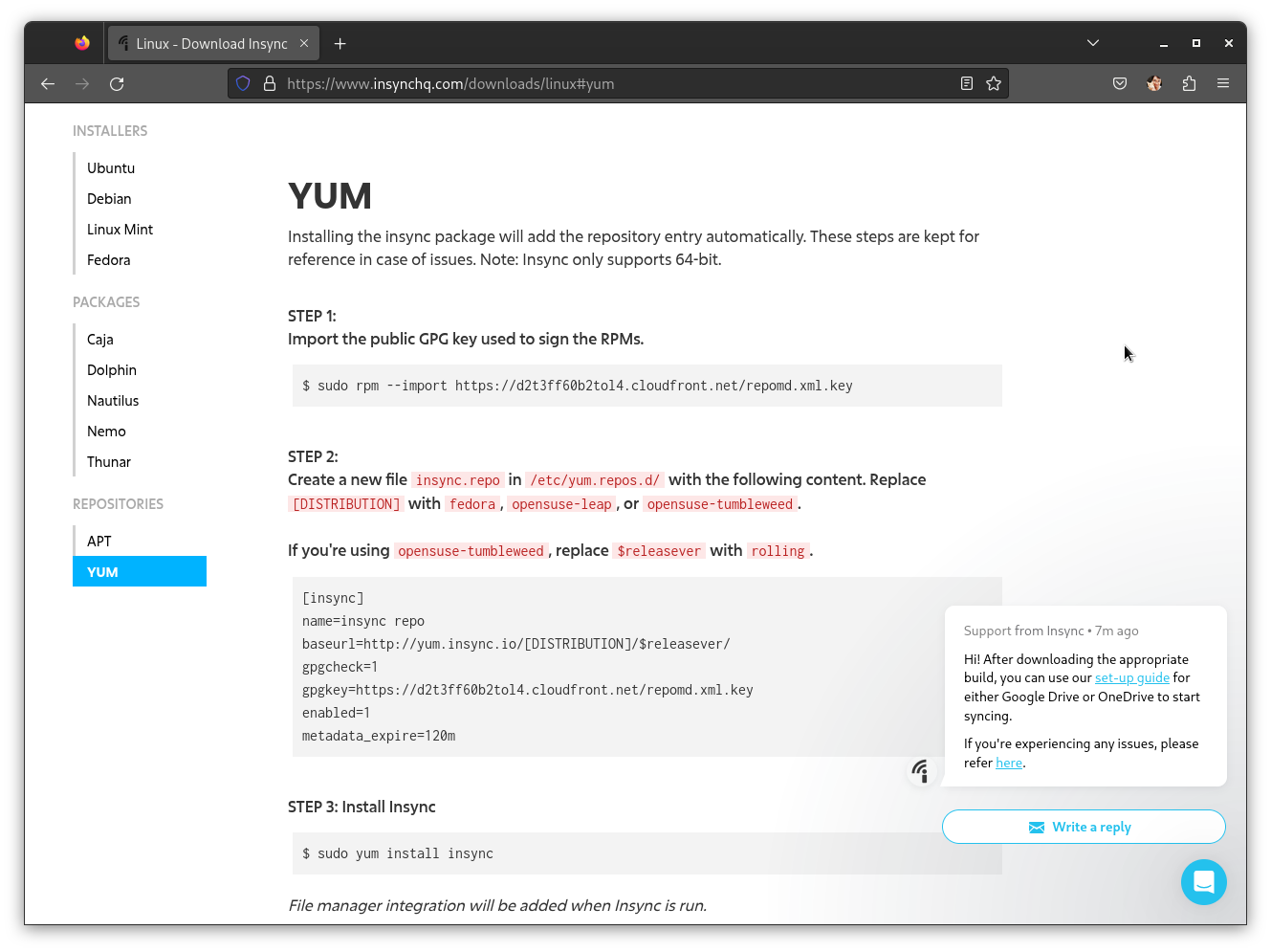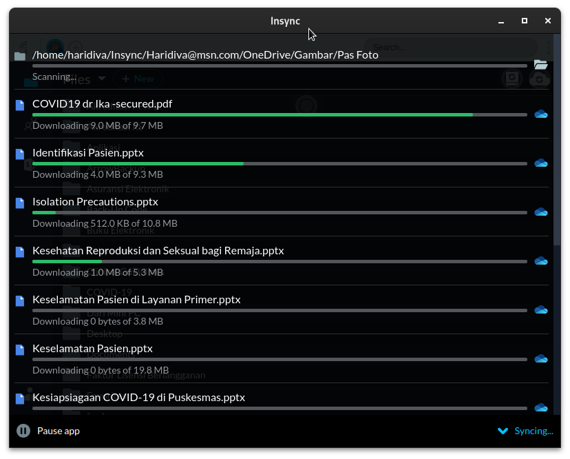 Saya menggunakan insync untuk melakukan sinkronisasi penyimpanan awan OneDrive di openSUSE. Memasangnya sedikit memerlukan trik, karena saya memilih menggunakan repositori.