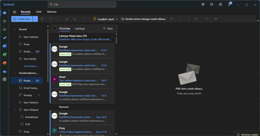 Outlook Free untuk Windows terlalu “ribet”. Saya tidak memerlukan pelbagai menu yang menjadi distraksi saat saya membuka email. Misalnya ikon Word, Excel, PowerPoint yang kemudian dibuka di Edge, bukannya pilihan yang menarik ada di situ secara asali.