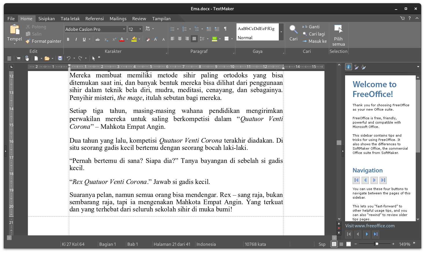 Saya tidak menggunakan FreeOffice sebagai pengganti Microsoft 365 yang saya miliki. Saya masih menyunting berkas melalui Office Online, atau lewat Windows.