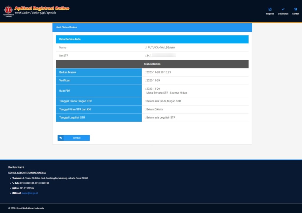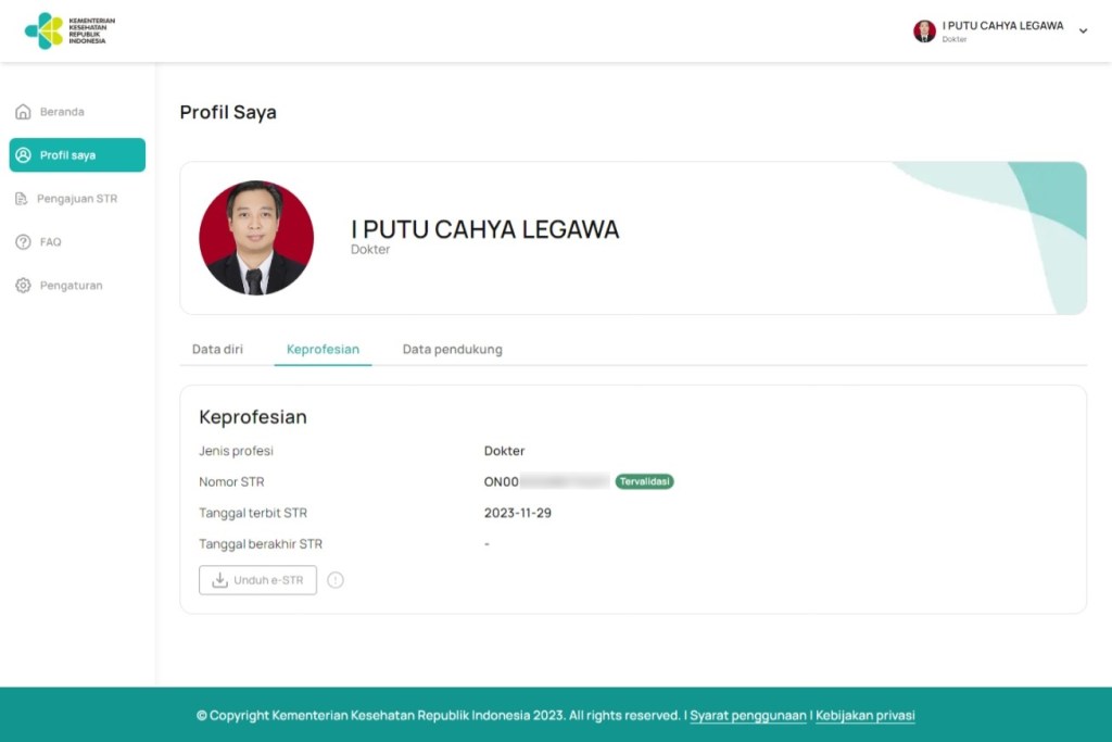 Data tersebut seperti kemudian akan langsung tersinkronisasi dengan data di kementerian (satusehat). Walau sepertinya nomor STR di kementerian agak berbeda.