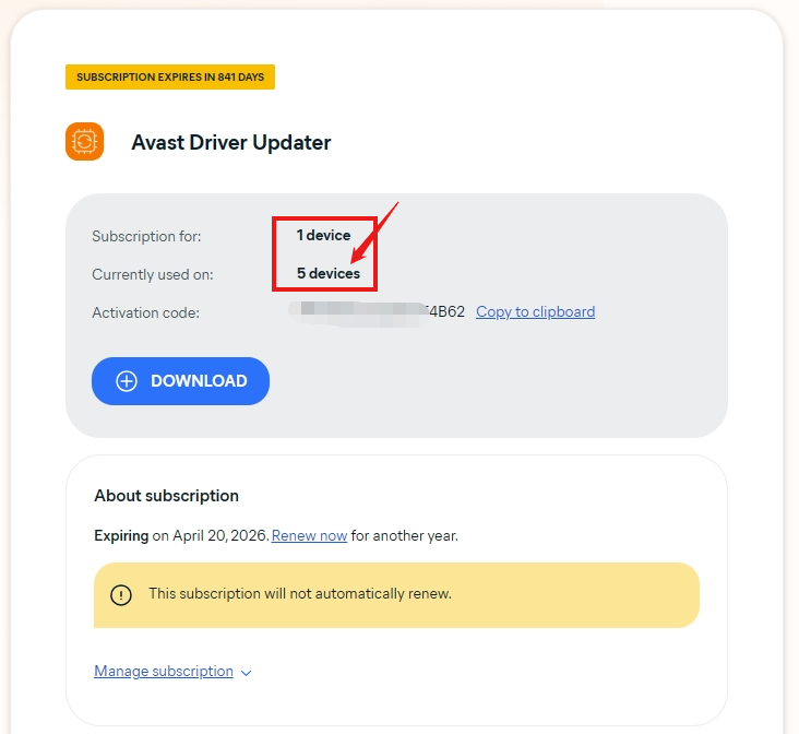 I bought Avast Driver License this year for my old notebook through my account on Avast website.