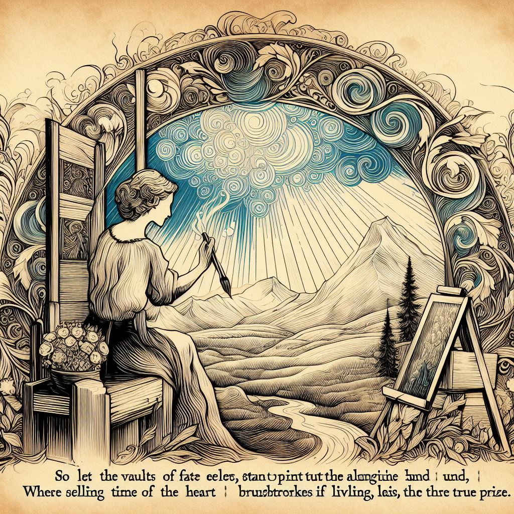 So let the vaults of fate stand empty, grand, While we, the poets, paint the living land. With brushstrokes of the heart, let futures rise, Where selling time is folly, living, the true prize.