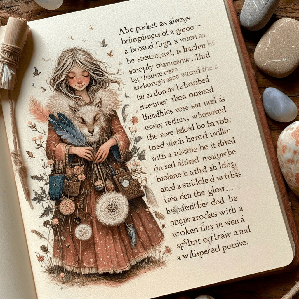 Her pockets were always brimming with treasures—a feather shed by a curious owl, a smooth pebble polished by the creek, or a dandelion puff that held the promise of a thousand wishes. She could coax a smile out of a grumpy goat with a handful of dandelions and mend a broken wing with a splint of straw and a whispered promise.