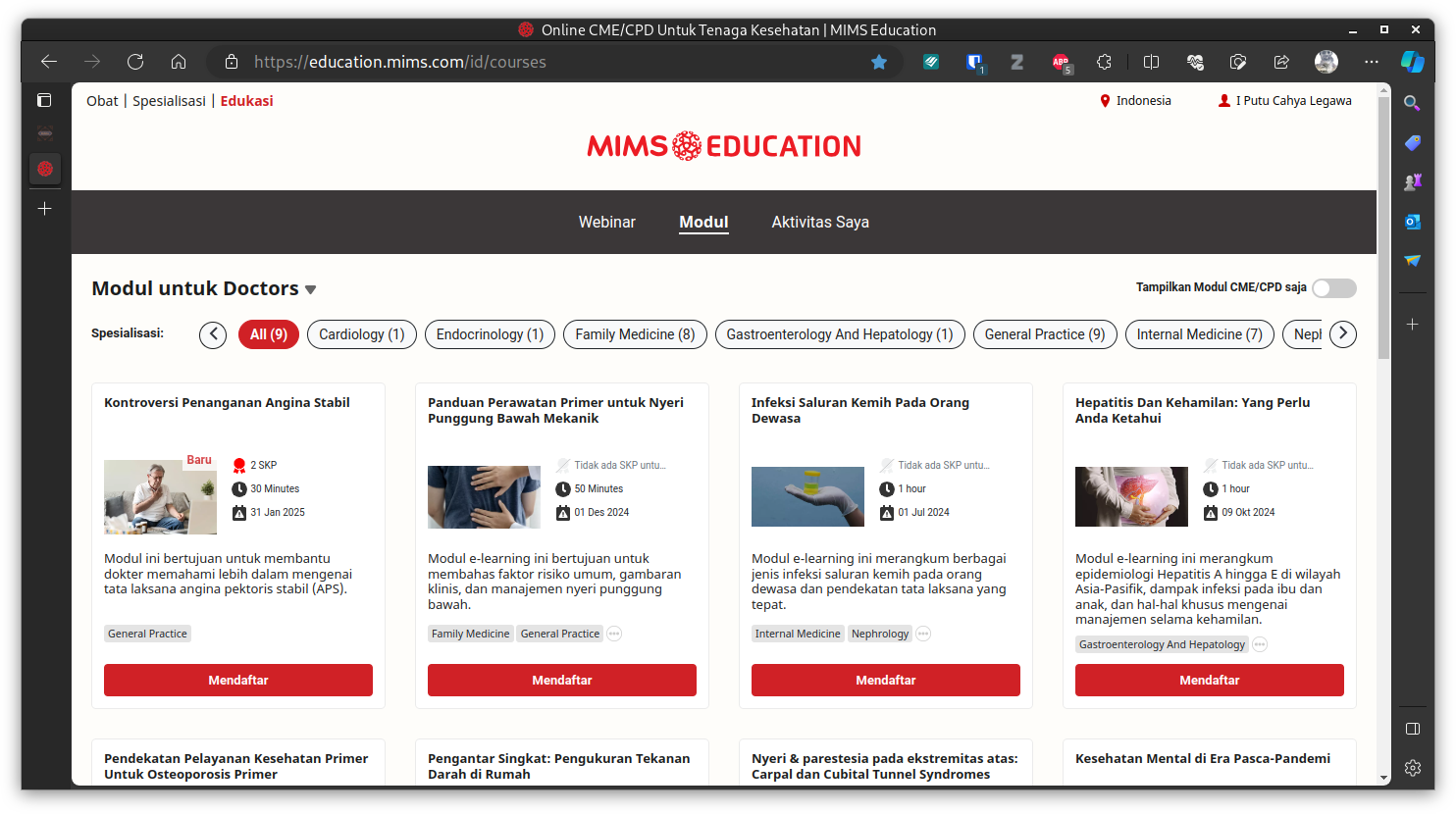 - Kontennya ekspansif, informatif, dan fokus ke Asia. Halaman web ini menyediakan berbagai modul pembelajaran yang mencakup hampir 20 topik spesialisasi medis, seperti family medicine, internal medicine, gastroenterology, nephrology, dan lain-lain. Modul-modul ini dirancang oleh para ahli di bidangnya dan disesuaikan dengan konteks regional Asia. Modul-modul ini juga memberikan SKP untuk CME/CPD bagi para dokter yang mengikutinya.
