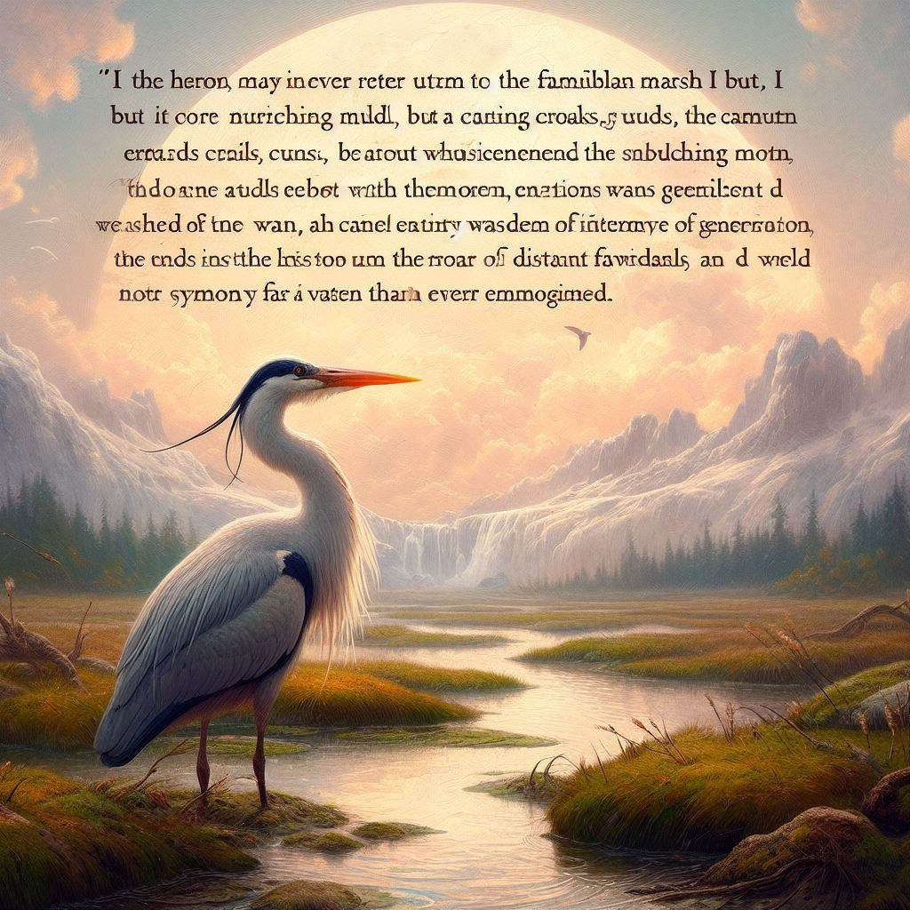 They told me my wings were made for this familiar marsh, a haven passed down through generations of herons. A symphony of whispers filled the air – “Why venture beyond?” they rasped, “Isn’t this life enough?” But within me, a restless current surged, whispering of something greater than the reeds and frogs I knew.