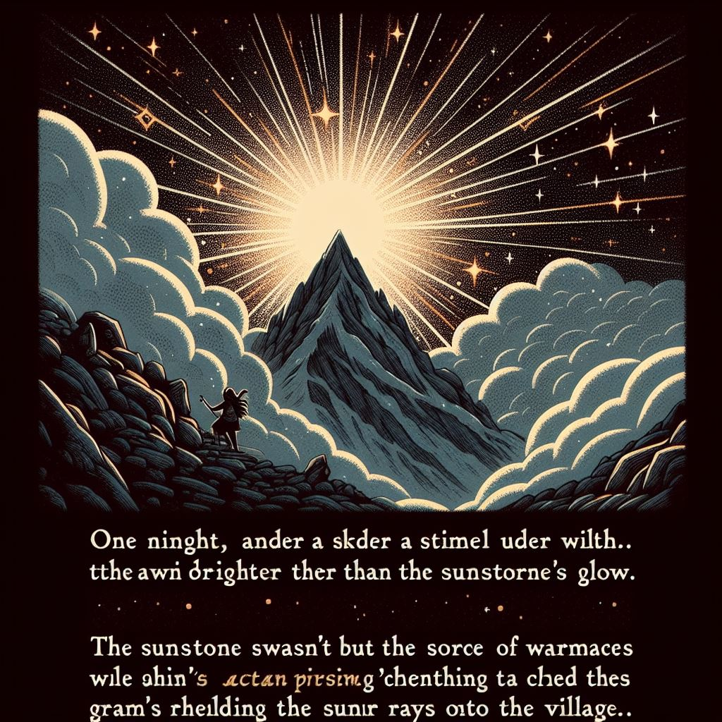 One night, under a sky dusted with stars brighter than the Sunstone’s glow, Elara snuck up the mountain. The air thinned, the climb arduous. Reaching the peak, she gasped. The Sunstone wasn’t a source of warmth, but a giant prism, channeling the actual sun’s rays onto the village.