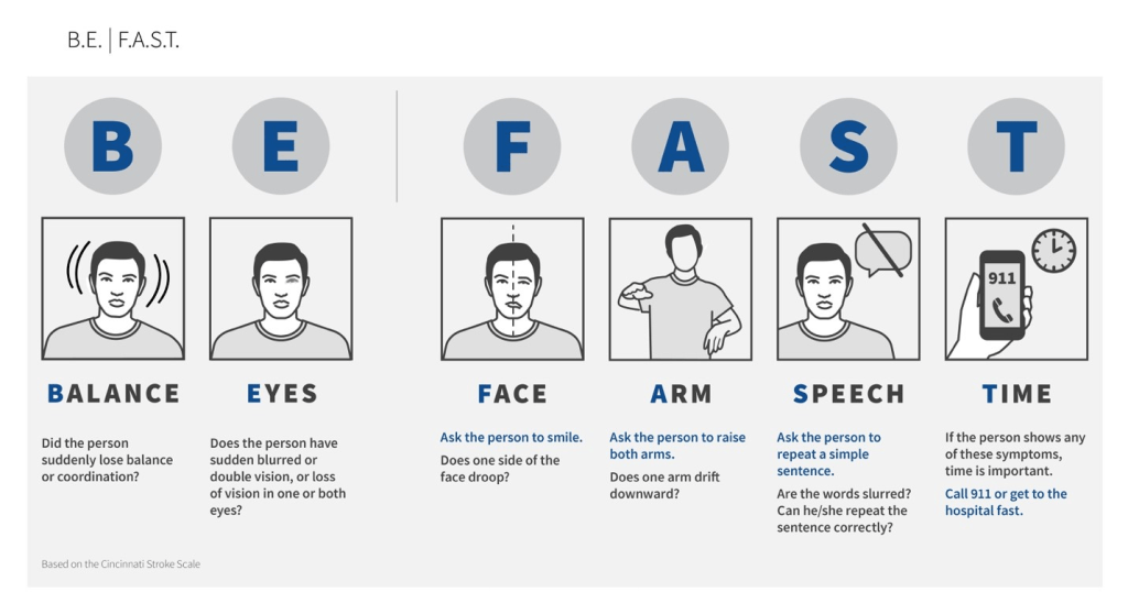 Salah satu cara untuk membantu masyarakat mengenali gejala stroke adalah dengan memahami akronim FAST, yang merupakan singkatan dari Face (wajah), Arms (lengan), Speech (bicara), dan Time (waktu). Akronim ini merupakan bagian dari Skala Stroke Cincinnati Pra-Rumah Sakit yang digunakan oleh petugas medis dan masyarakat umum untuk mengidentifikasi gejala stroke sebelum pasien tiba di rumah sakit.