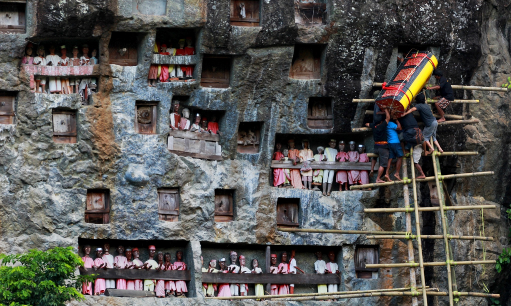 - Cliffside Burial Sites: Explore the eerie yet fascinating burial sites carved into cliffs, guarded by wooden effigies called Tau Tau.