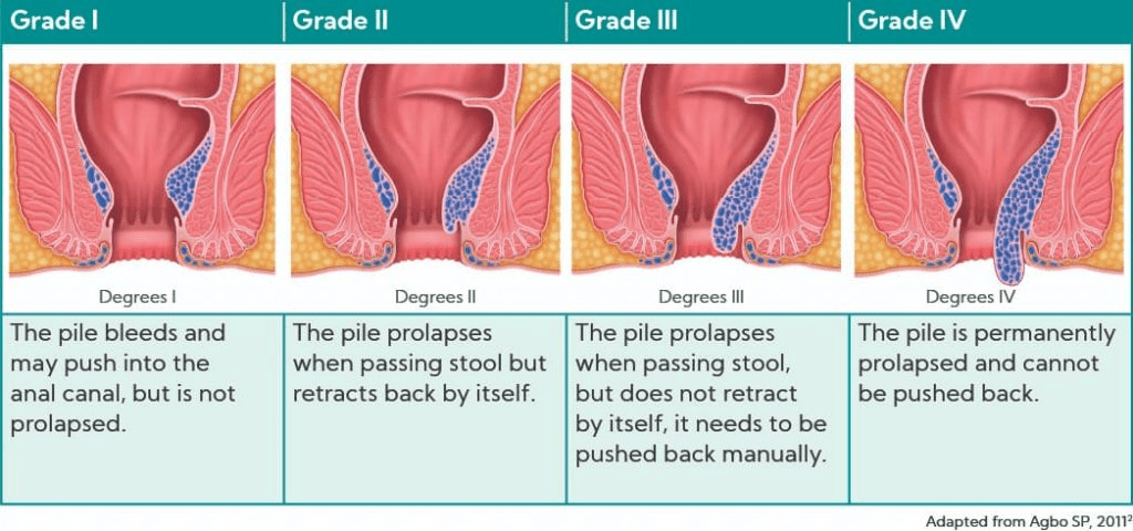 - Prolaps Hemoroid: Hemoroid internal yang menonjol keluar melalui anus.