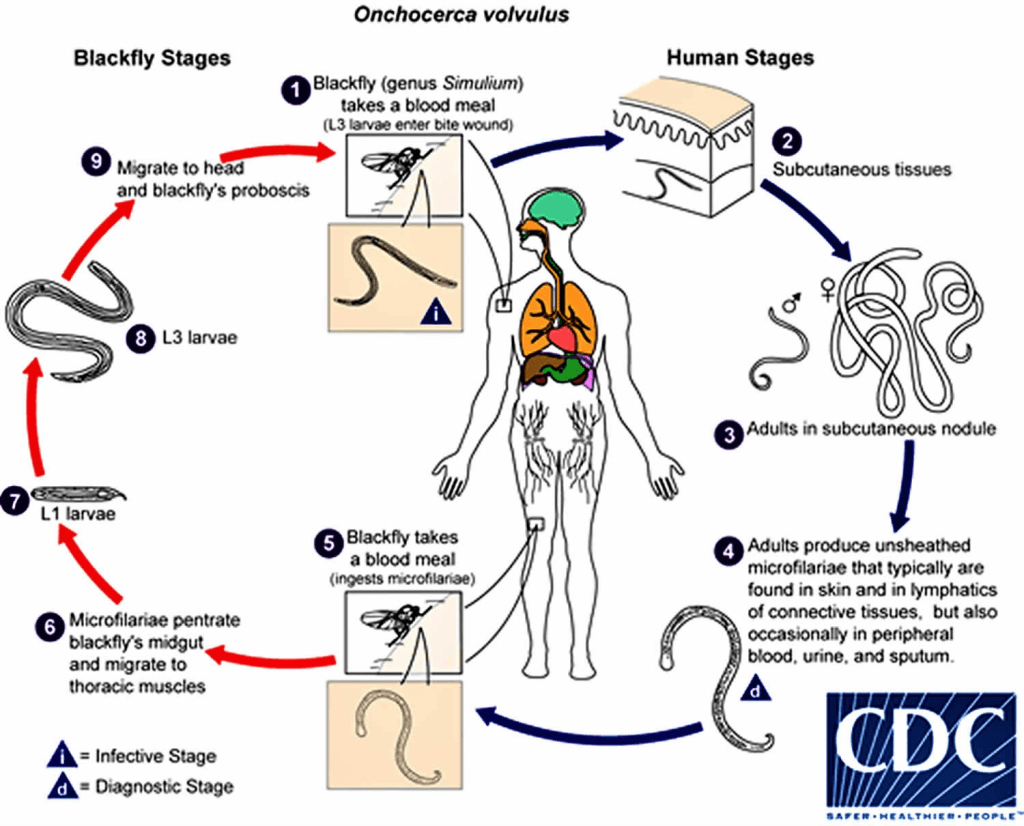 Onchocerciasis adalah penyakit parasit yang disebabkan oleh cacing filaria Onchocerca volvulus. Penyakit ini ditularkan melalui gigitan lalat hitam (Simulium spp.) yang berkembang biak di aliran sungai berarus deras—oleh karena itu disebut “kebutaan sungai”.