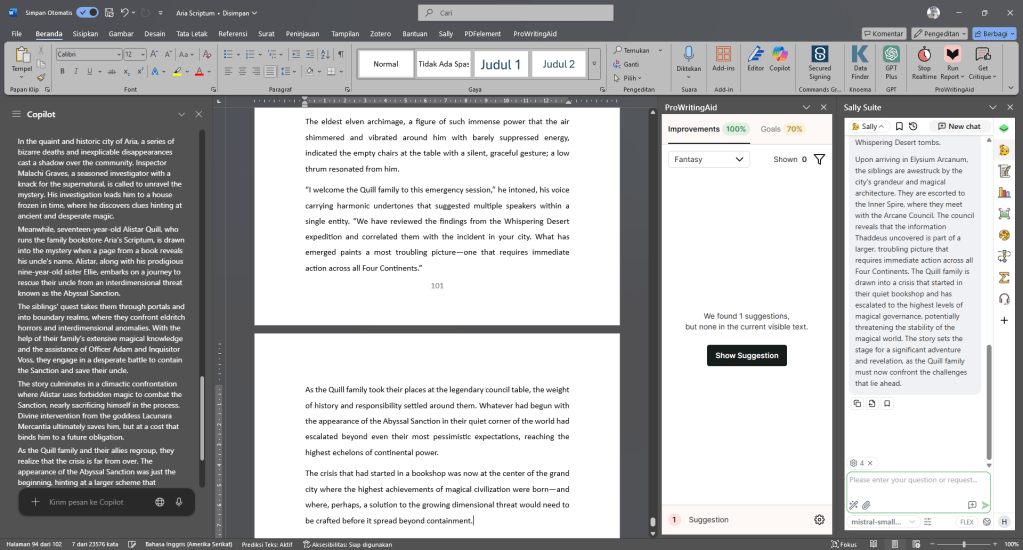 Selain sederhana, Microsoft Word juga mendukung banyak add-in yang bermanfaat untuk meningkatkan produktivitas penggunanya. Misalnya, add-in seperti Copilot dan Sally yang bisa membantu saya membuat sinopsis menarik dengan berbagai ide kreatif dan struktur yang lebih baik, sehingga saya dapat menghasilkan tulisan yang lebih menarik dan terarah.
