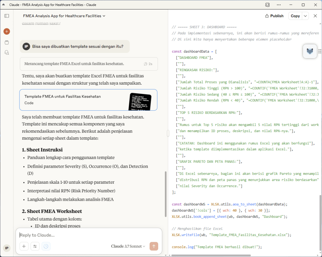 Akal imitasi (AI) jika dimanfaatkan untuk hal-hal terkait manajemen klinis ternyata cukup membantu. Saya menggunakan Claude untuk membangun aplikasi JS sederhana untuk analisis FMEA.