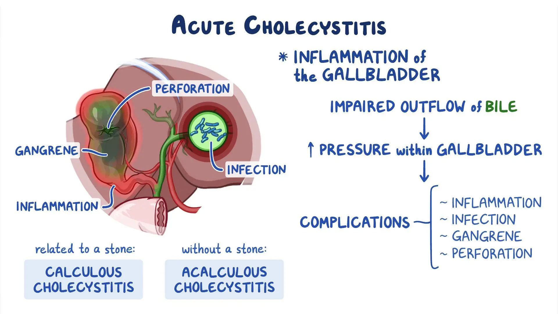 Pada kasus akut, pasien mungkin perlu menjalani puasa dengan penggantian cairan intravena untuk mengurangi tekanan pada kandung empedu.