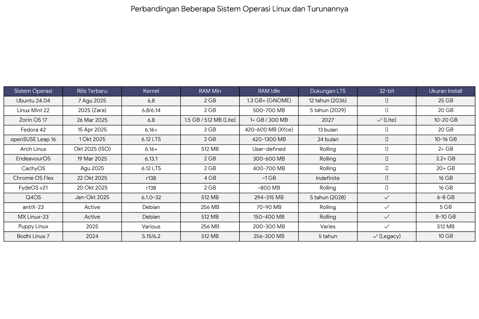 - Ya, sedikit → Ubuntu 24.04, Fedora 42, MX Linux, atau EndeavourOS