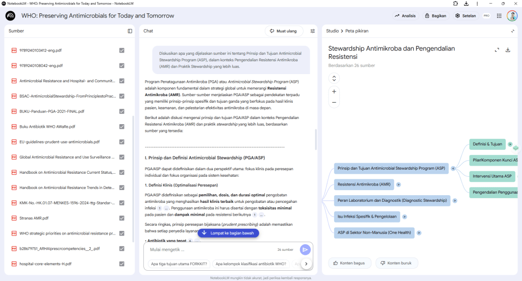 - Gunakan suggested questions yang muncul di NotebookLM kalau bingung mau nanya apa