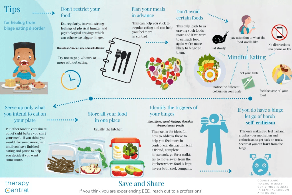 - Menghilangkan restriksi makanan yang ketat dan makanan “terlarang” yang sering memicu binge