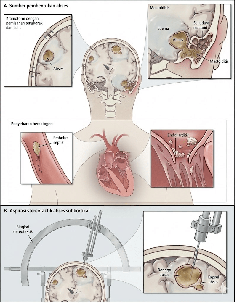 Hall, W. A., & Mesfin, F. B. (2024). Brain abscess. Dalam StatPearls. StatPearls Publishing. https://www.ncbi.nlm.nih.gov/books/NBK441841/