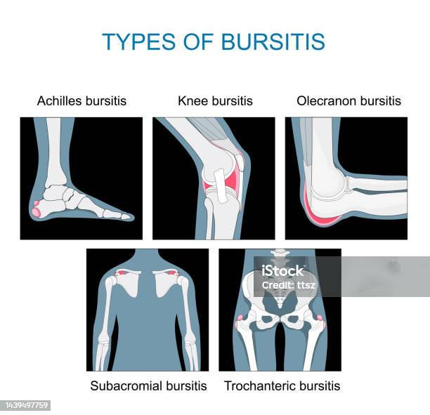 Bursitis dapat terjadi di hampir semua sendi tubuh, tetapi ada beberapa lokasi yang paling sering ditemukan dalam praktik klinis sehari-hari.