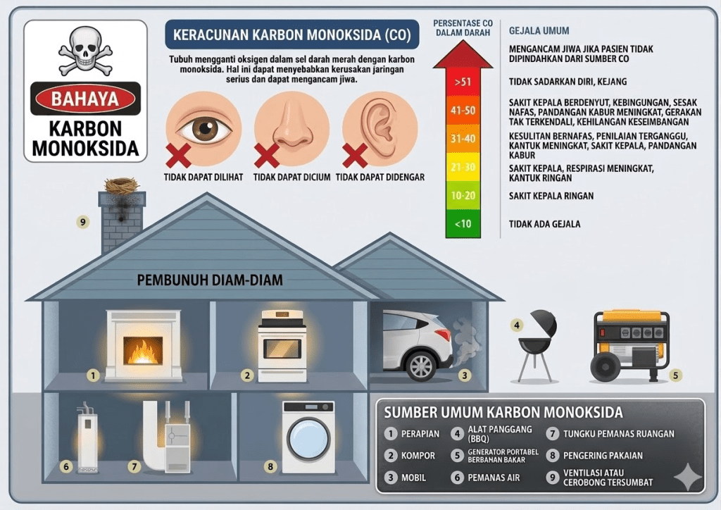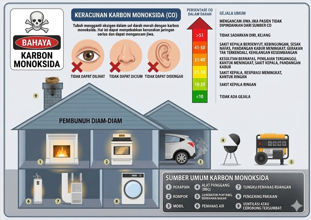Karbon monoksida adalah ancaman nyata yang tersembunyi di balik aktivitas sehari-hari kita. Ia tidak mengirimkan peringatan; ia tidak meninggalkan jejak yang kasat mata. Namun dengan pemahaman yang benar tentang sumber paparan, gejala yang mungkin muncul, dan langkah penanganan yang tepat — baik oleh masyarakat umum maupun tenaga kesehatan — banyak nyawa yang dapat diselamatkan. Investasi dalam detektor CO, edukasi publik yang berkelanjutan, dan peningkatan kapasitas diagnosis di fasilitas kesehatan primer adalah langkah-langkah yang tidak hanya logis secara medis, tetapi juga mendesak secara kemanusiaan.