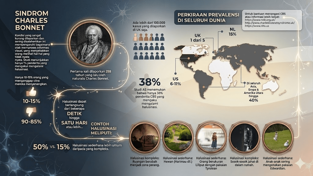 Padahal, pengalaman tersebut bisa jadi merupakan manifestasi dari suatu kondisi yang jauh lebih sederhana secara psikiatri, tetapi sangat kompleks secara neurologis: Charles Bonnet Syndrome (CBS), atau Sindrom Charles Bonnet.